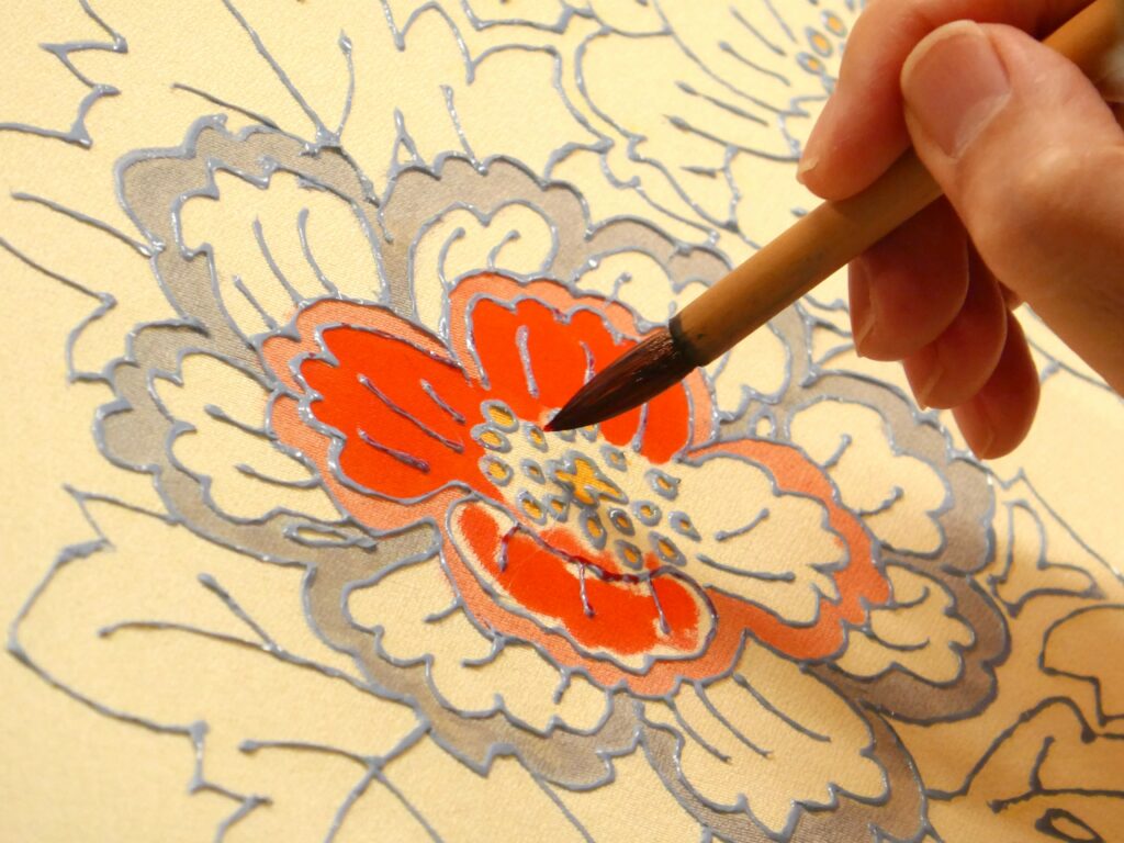 色挿し体験だけでなく、糸目糊置きから色挿しまでの工程を体験できるのが、