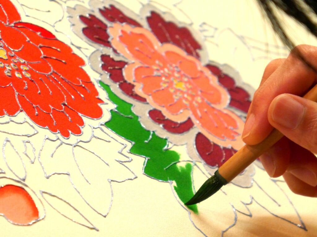 滲んではみ出さないように、様子を見ながら丁寧に筆を動かします。