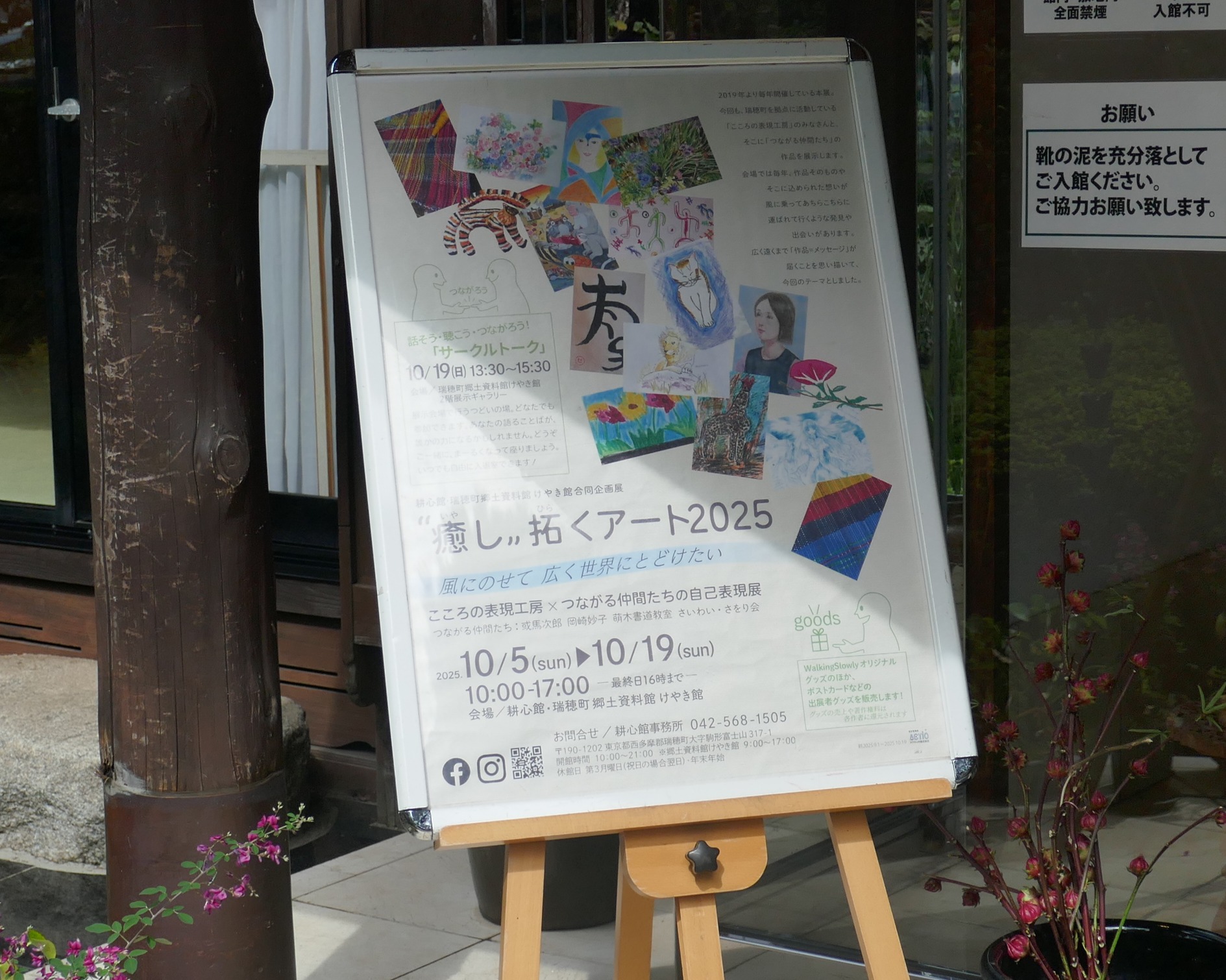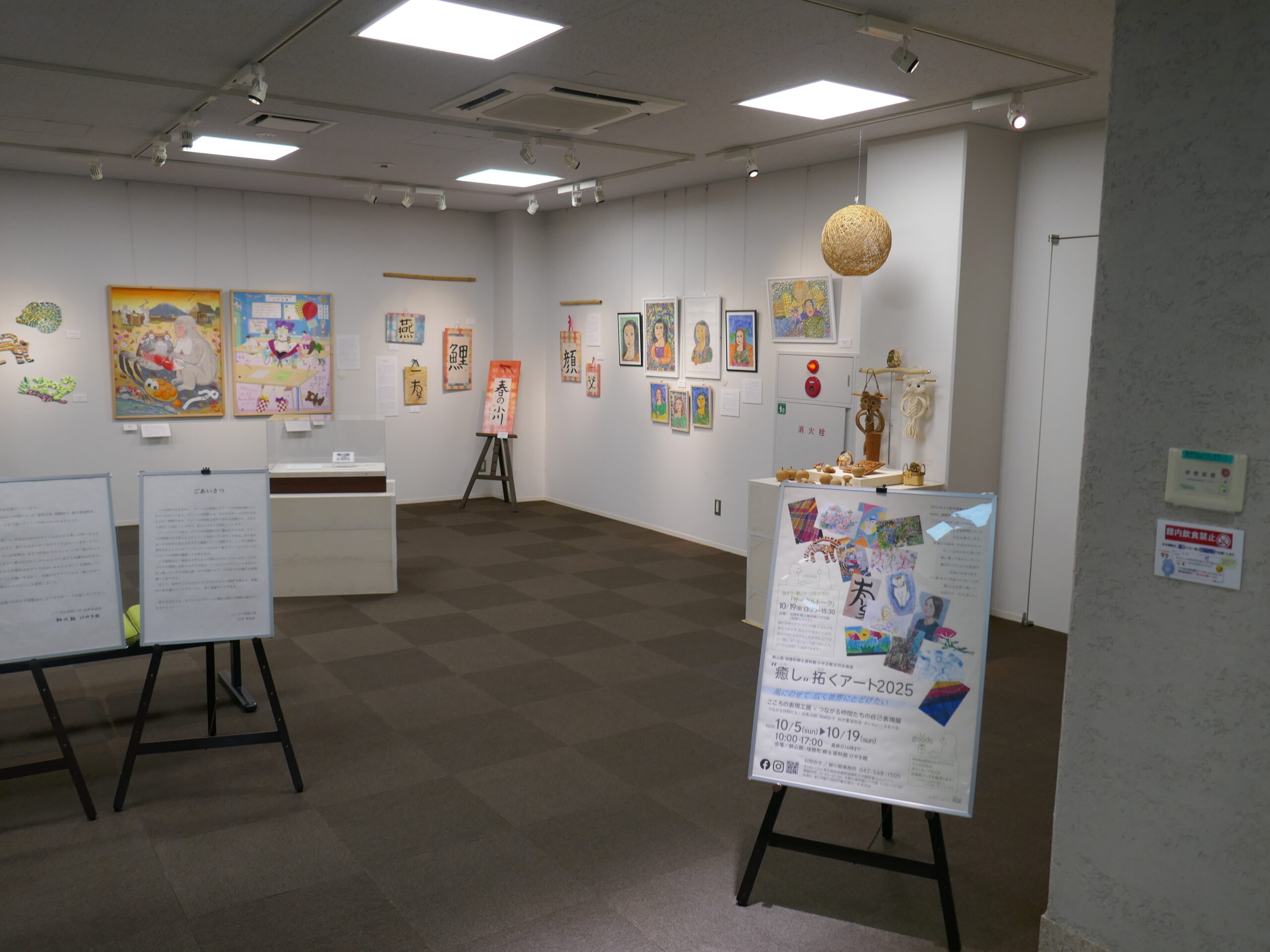 10月5日(日)から19日(日)まで、エントランスとギャラリーで、耕心館・瑞穂町郷土資料館けやき館合同企画展 「‘’癒し‘’拓くアート2025」~風にのせて 広い世界に届けたい~ こころの表現工房×つながる仲間たちの自己表現展を開催しました。