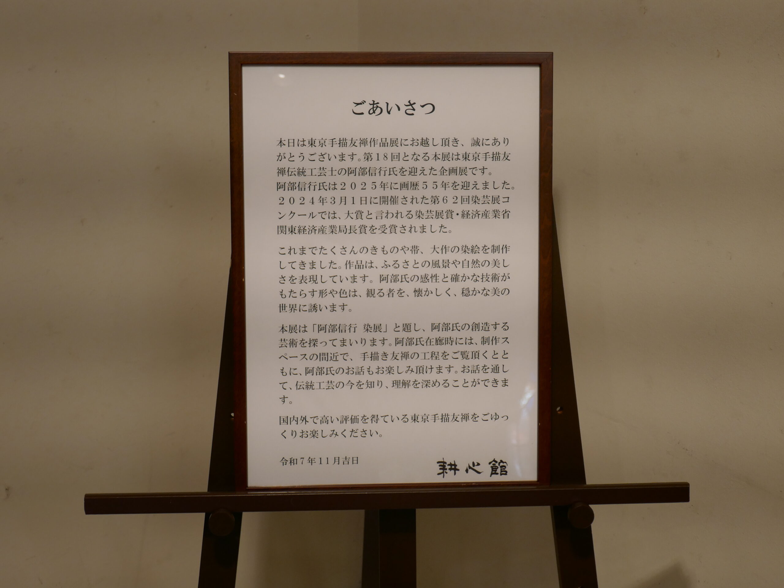 本展、耕心館企画展「第18回 東京手描友禅展 阿部信行 染展」は、