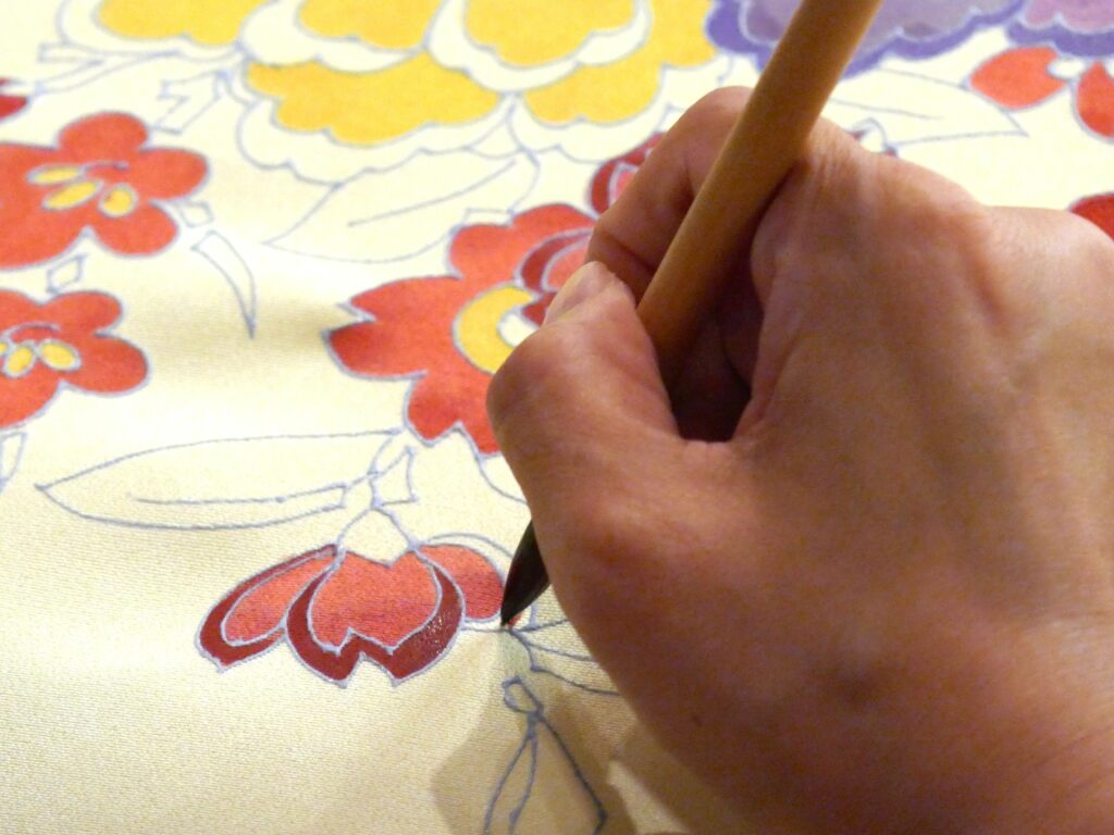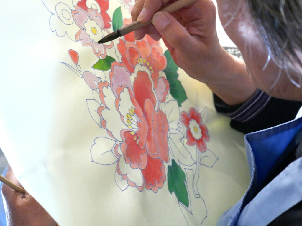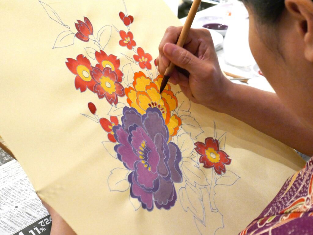 友禅の色挿しだけを気軽に体験できるワークショップです。