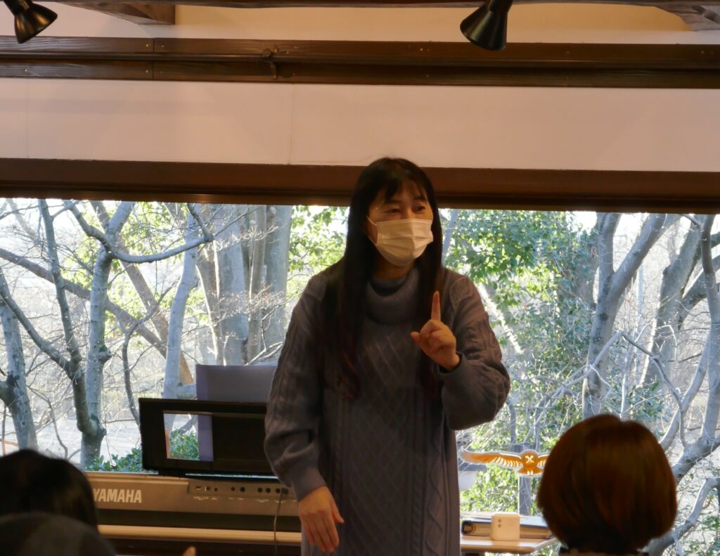 曲と曲の間では休憩もかねて、ゆう子さんが面白い話や歌にまつわるためになる話をしてくれます。