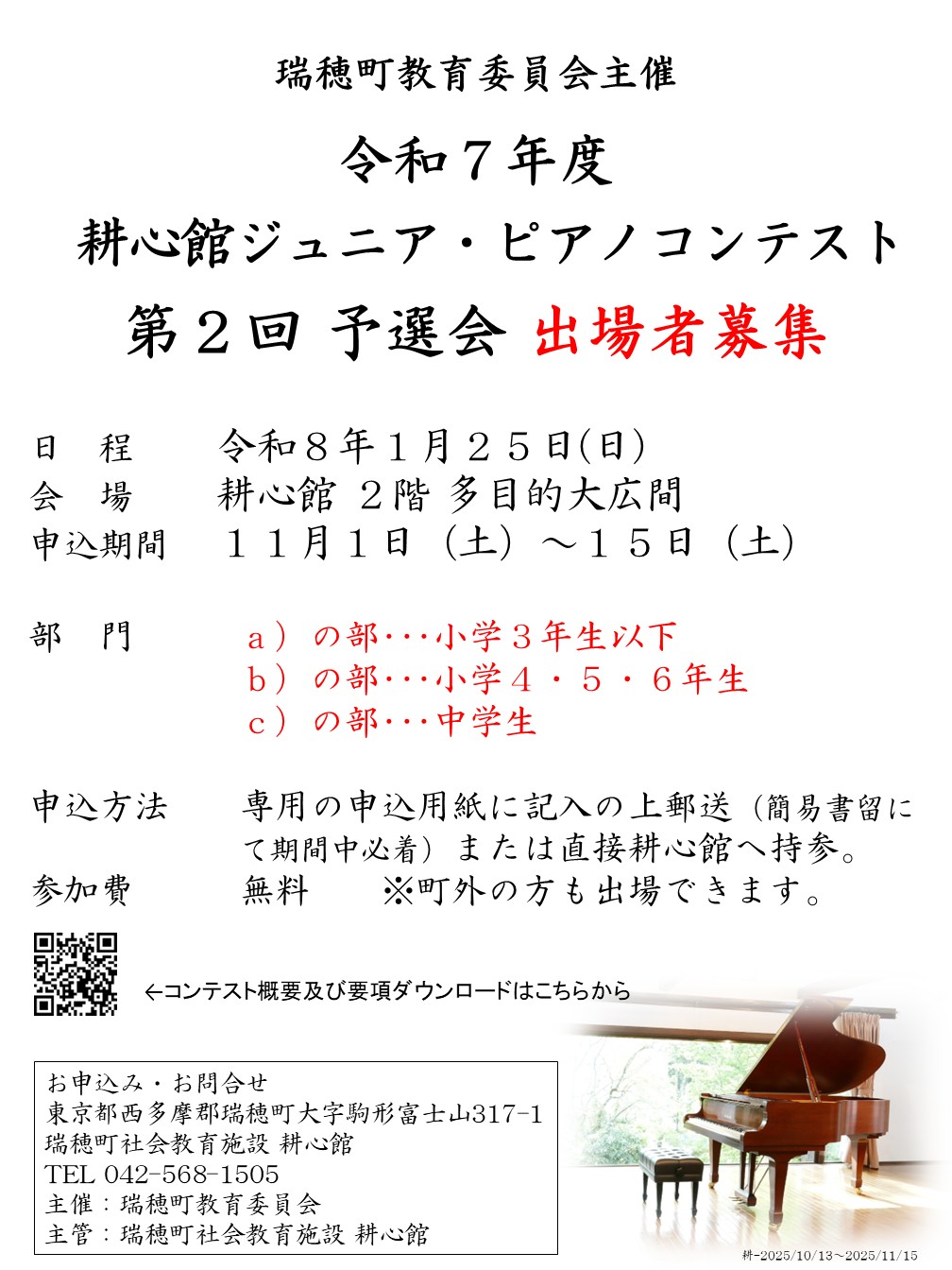 令和7年度 耕心館ジュニア・ピアノコンテスト