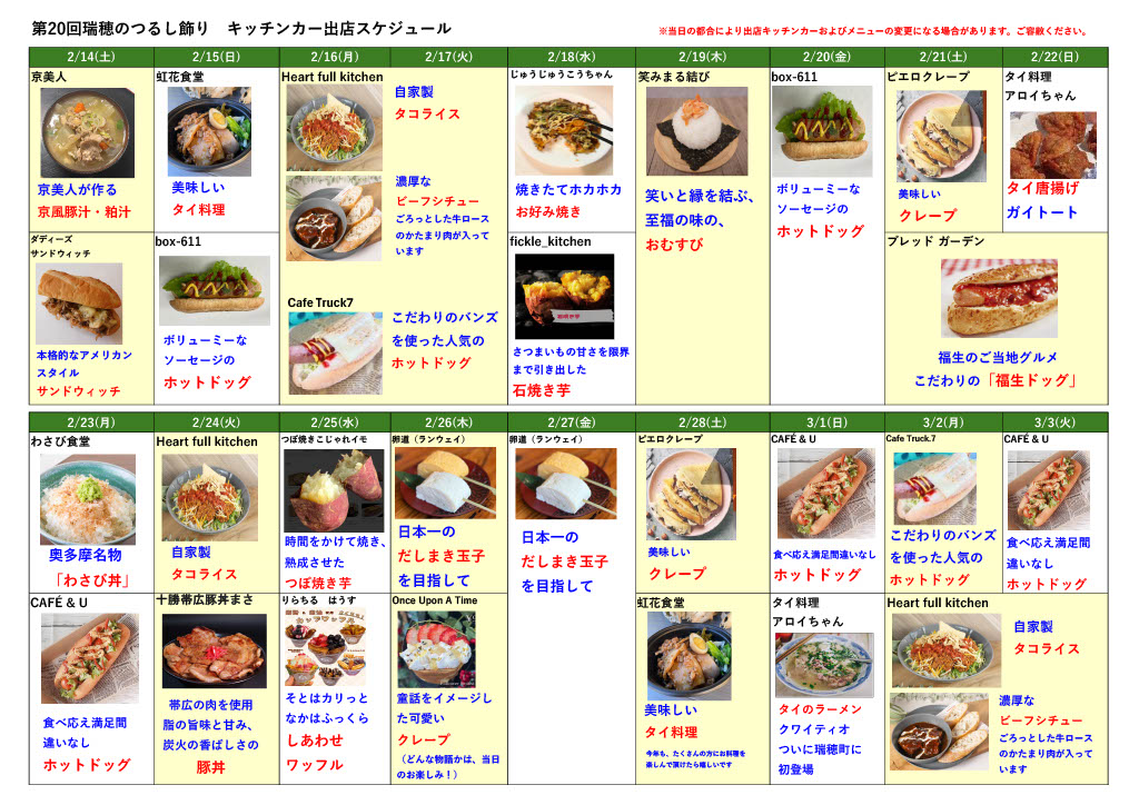 ****************************************************************************************** キッチンカー出店スケジュール