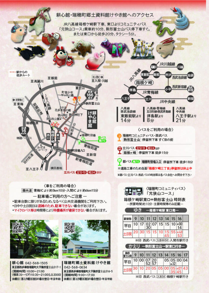 瑞穂のつるし飾りは両館ボランティアによる、心のこもったつるし飾りの展示を中心とした企画展示です。 第20回を迎えた今年の新作は2026年の干支の「午」、「六道山の山桜」です。 20回を記念した企画も予定しています。愛らしいお飾りをご覧に、耕心館と郷土資料館けやき館へ、ぜひお越しください。